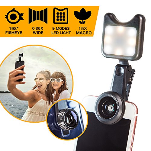 IMPRESS WITH YOUR PHOTOGRAPHY SKILLS - achieve top quality photography, including selfies with our universal cell phone lens kit and light attachment. Be the envy of your friends with your various phone camera accessories. Our lenses made of aluminium alloy and multi-element high quality coated glass to improve your photos!